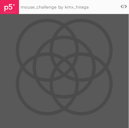次の完成形を参考に、マウスの位置に応じて色や大きさが変化するプログラムを自分で書いてみましょう。図形の色の変化の仕方などは自分で考えたルールでOKです。