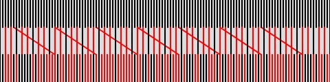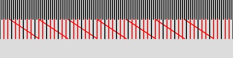 8ずつずらして線を。if文を使ってi%24 == 0を条件式に入れることにより、iが24や48の場合にだけ黒色blackで線を描き、それ以外の場合は赤色を描く処理となっています。