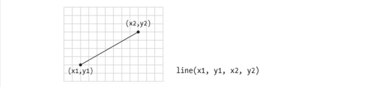 画面に線(2点間の直接パス)を描画します。4つのパラメーターを持つline()のバージョンは、2Dで線を描画します