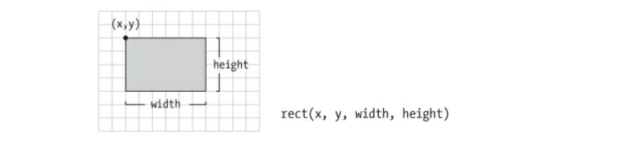 すべての角度は90度です。デフォルトでは、最初の2つのパラメータは左上隅の位置を設定し、3番目のパラメータは幅を設定し、4番目のパラメータは高さを設定します。これらのパラメータが解釈される方法はrectMode()関数での設定により変更されます。