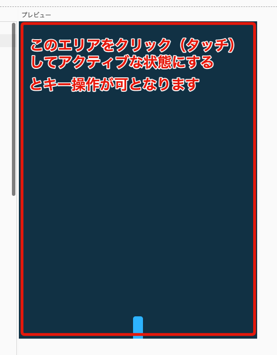 - タイトル画面をつくるまでは、キャンバス部分をアクティブにした状態でキー操作ができるようになります。以下の画像を参考にしてください。
