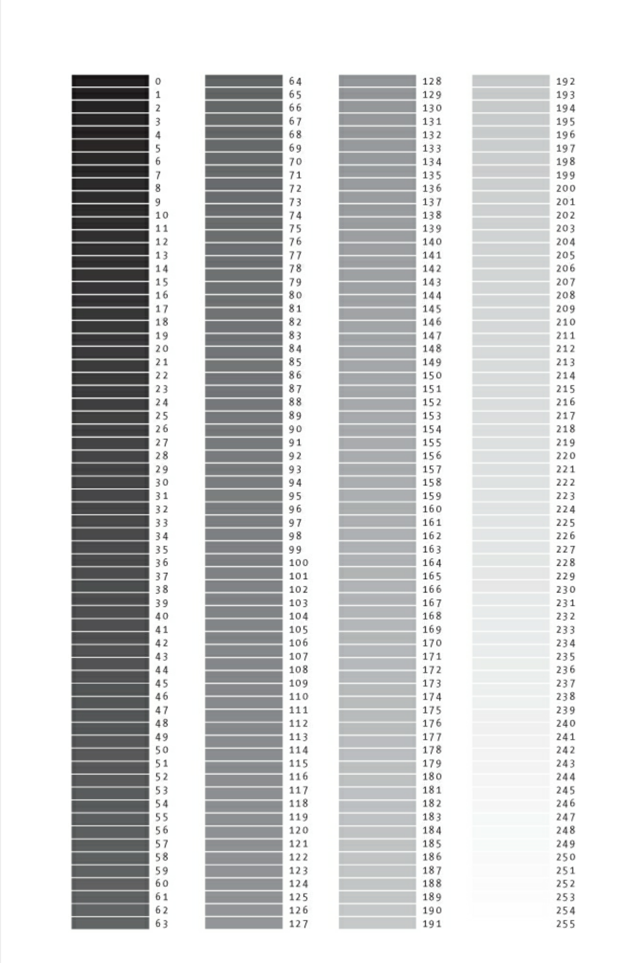 全く同じ状態が確認できれば、OKだよ。色には数字が割り当てられているんだね! 0が黒で数値が大きくなるほど明るくなり、255が白色になるよ